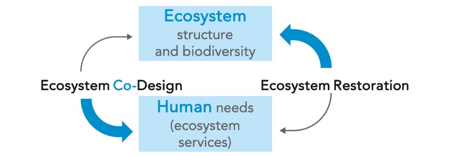 Figure 3: Illustration of the Ecosystem Co-Design approach, focusing on human needs, especially those of local actors. Those human needs would represent the societal challenges to be addressed in the framework of Nature-based Solutions (NbS). Modified after Zimmer 2018. Courtesy of J. Geburzi & M. Zimmer.
